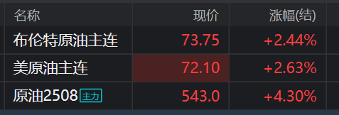 不过,晚间油价突然飙涨。国内原油期货主力合约涨超4%。布伦特原油、美原油均涨超2%。