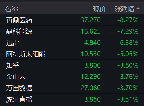 多只中概股下跌,纳斯达克中国金龙指数一度跌超1%。个股方面,再鼎医药跌超8%,晶科能源跌超7%,迅雷、阿特斯太阳能等个股跌超5%。